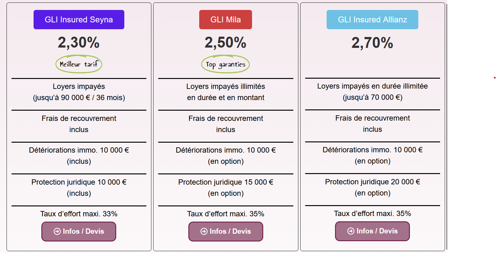 JeLoueBien propose une gamme d'assurances loyer impayé (GLI), à partir de 2,3% du loyer. C'est le meilleur rapport qualité/prix du marché.